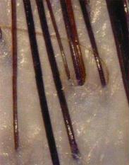 The scalp is composed of: a superficial epidermis, with little pigment and well-protected from light by the hair, and a deeper area, the dermis, in which hair bulbs are densely packed.