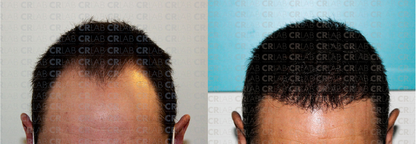 Grâce à l’expertise de CRLAB, il est possible d’utiliser une technique mixte pour obtenir des résultats particulièrement significatifs. Un résultat entièrement naturel qui permet également une densité optimale.Lorsque la zone dégarnie est trop étendue ou que la zone donneuse n’est pas suffisamment riche, il est possible de combiner l’autogreffe (zone frontale) avec le système capillaire CRLAB (zone du vertex). Ce résultat garantit une densité parfaite et un aspect très naturel.