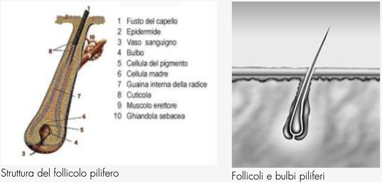 Il follicolo pilifero è una formazione di origine epidermica, affondata nel derma e formata dal pelo e dalle sue guaine.